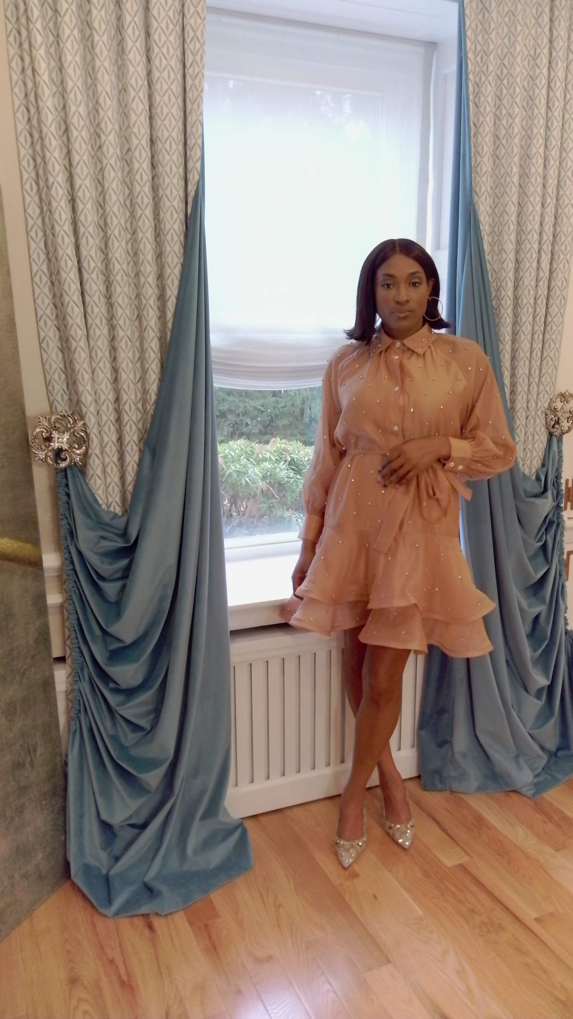 A-Line Midi Dress with Rhinestones throughout with tiered bottom,