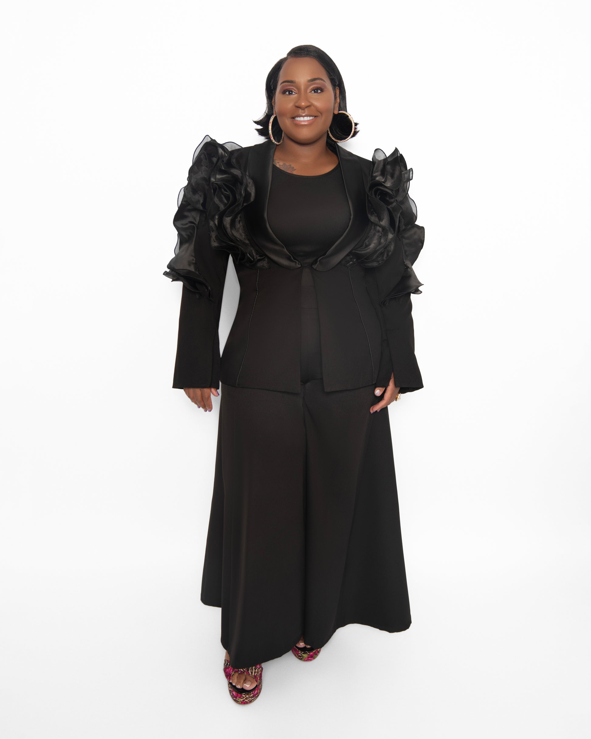 Elevate your formal attire with this timeless piece, featuring ruffled sleeves for a touch of flair.