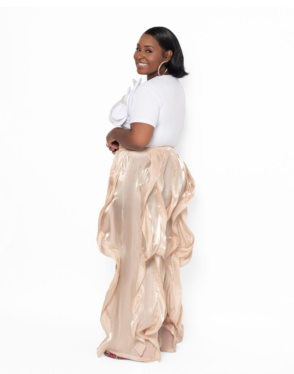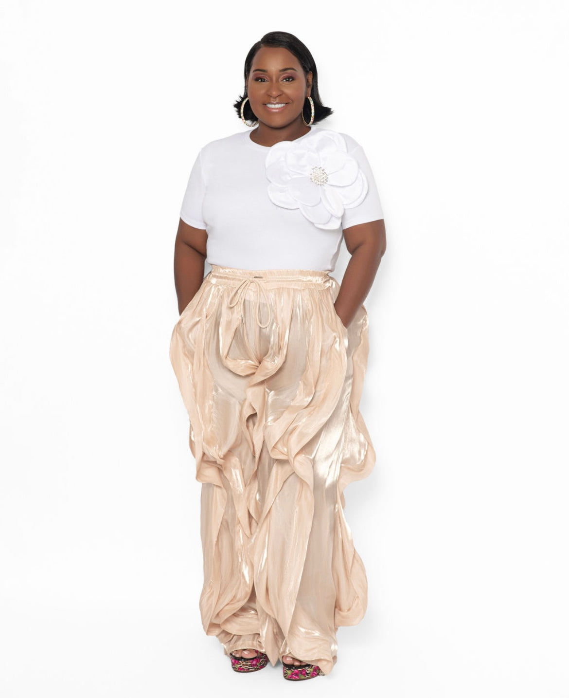 White Cotton Shirt w/Big Flower & Small Diamond Center.